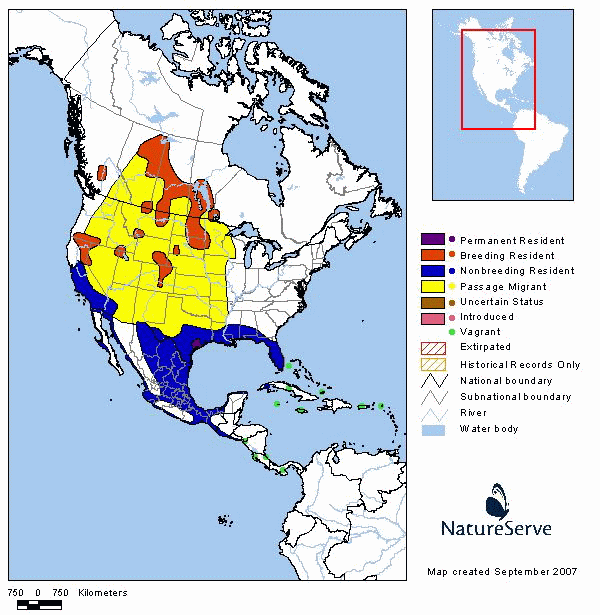 Range data provided by Infonatura/Natureserve. Ridgely, R. S., T. F. Alnutt, T. Brooks, D. K. McNicol, D. W. Mehlman, B. E. Young, and J. R. Zook. 2005 Digital Distribution Maps of the Birds of the Western Hemisphere, version 2.1 NatureServe, Arlington, Virginia, USA