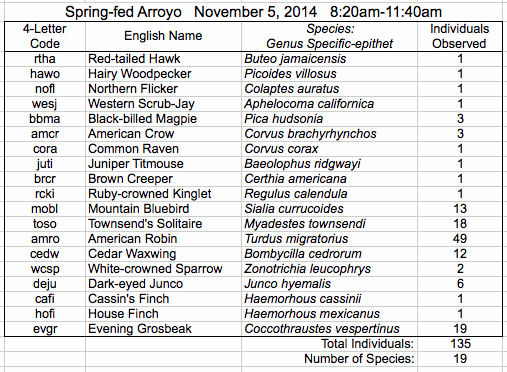 | Western Scrub-Jay Aphelocoma californica ![]() Enlarge Map External Sites: Cornell USGS Image Search | Common in all area habitats. Note white throat and faint white eyebrow. Also brownish-gray back. Distinguished from the Pinyon Jay by longer tail and solitary behavior. Number of Individuals Observed:1 | ![]() Arroyo la Mina ![]() Cañoncito |